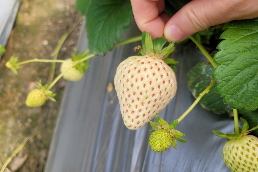 外表淡雅、風味溫柔的雪兔白草莓,是園內難得的稀有品種。甜度清爽不厚重,幾乎沒有酸感,口感細緻滑順,適合喜歡淡甜系、細膩風味的朋友。